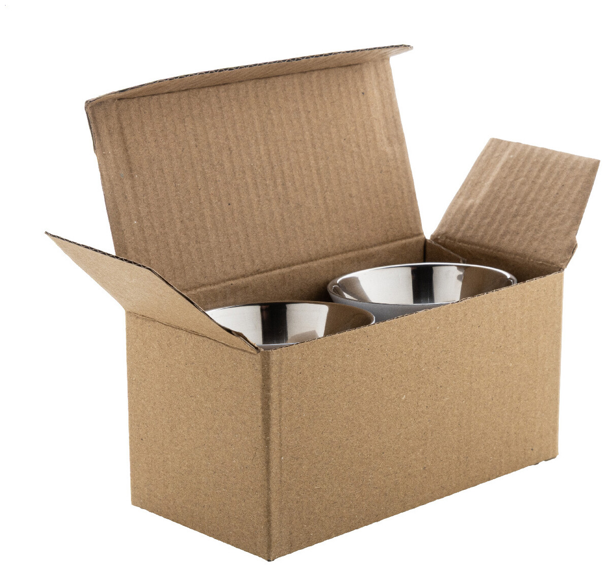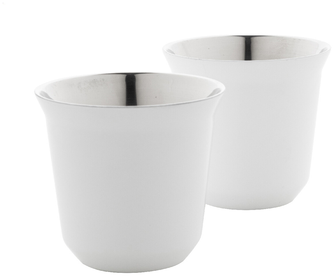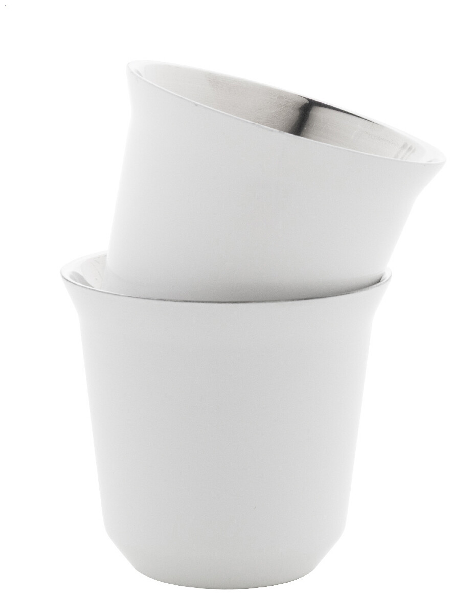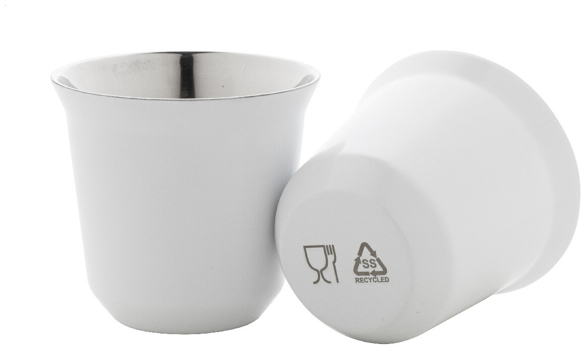 Sada 2 dvoustěnných termohrnků na espresso ve tvaru kávových kapslí z recyklované nerezové oceli, 80 ml. V krabičce z kraftového papíru.