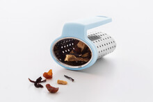 Nerezové sítko na čaj s praktickým klipem z recyklovaného ABS plastu. Navržen pro snadné připevnění k okraji hrnku.