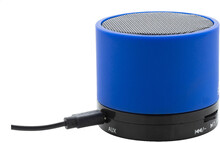 Bezdrátový reproduktor z recyklovaného ABS v pogumovaném pouzdře s kovovou síťovinou a dobíjecí baterií (300 mAh). S funkcí handsfree hovorů a přehrávání MP3 z micro SD karty. Včetně nabíjecího kabelu USB.