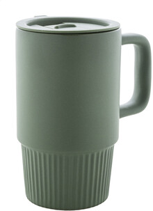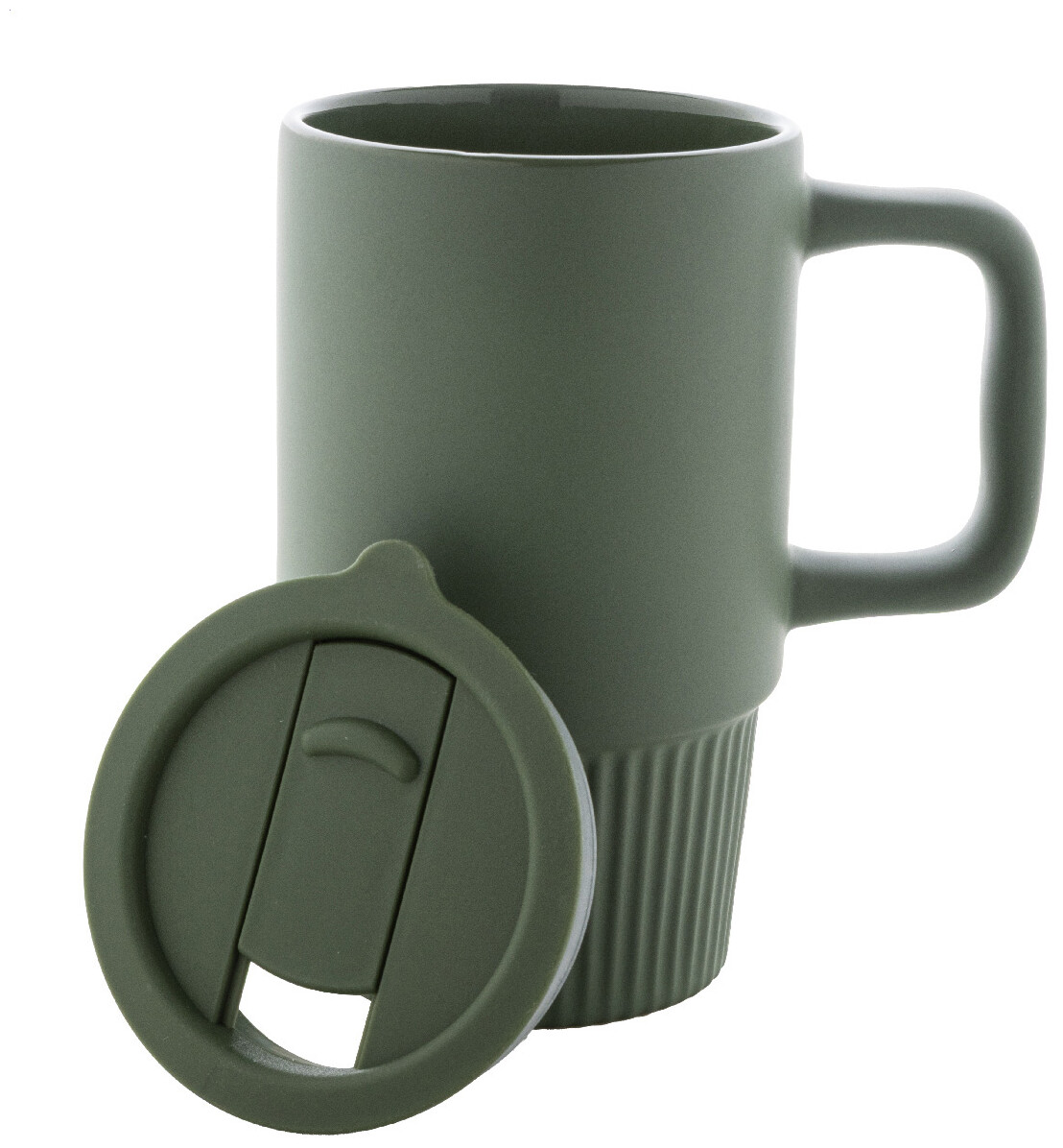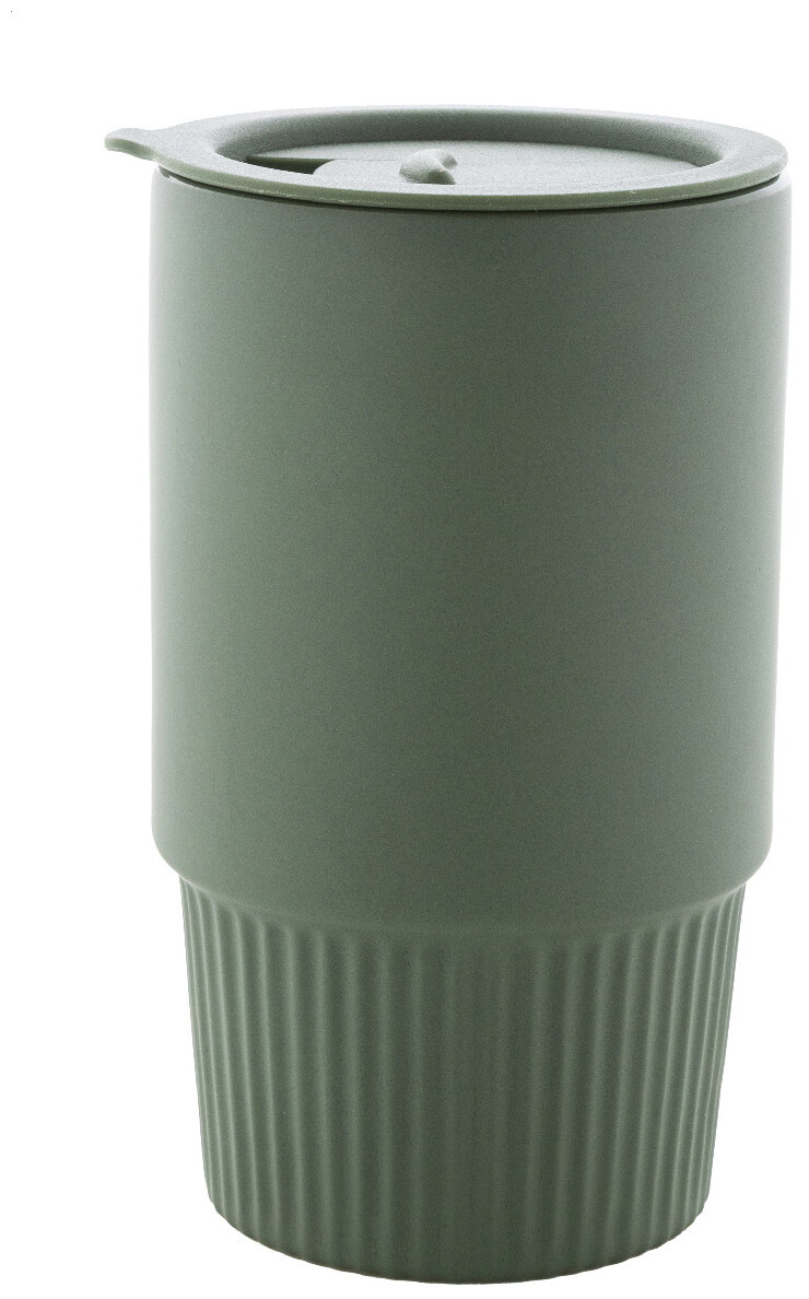 Vysoce kvalitní keramický cestovní hrnek s matným vnějším povrchem a plastovým víčkem z polypropylenu. 420 ml.