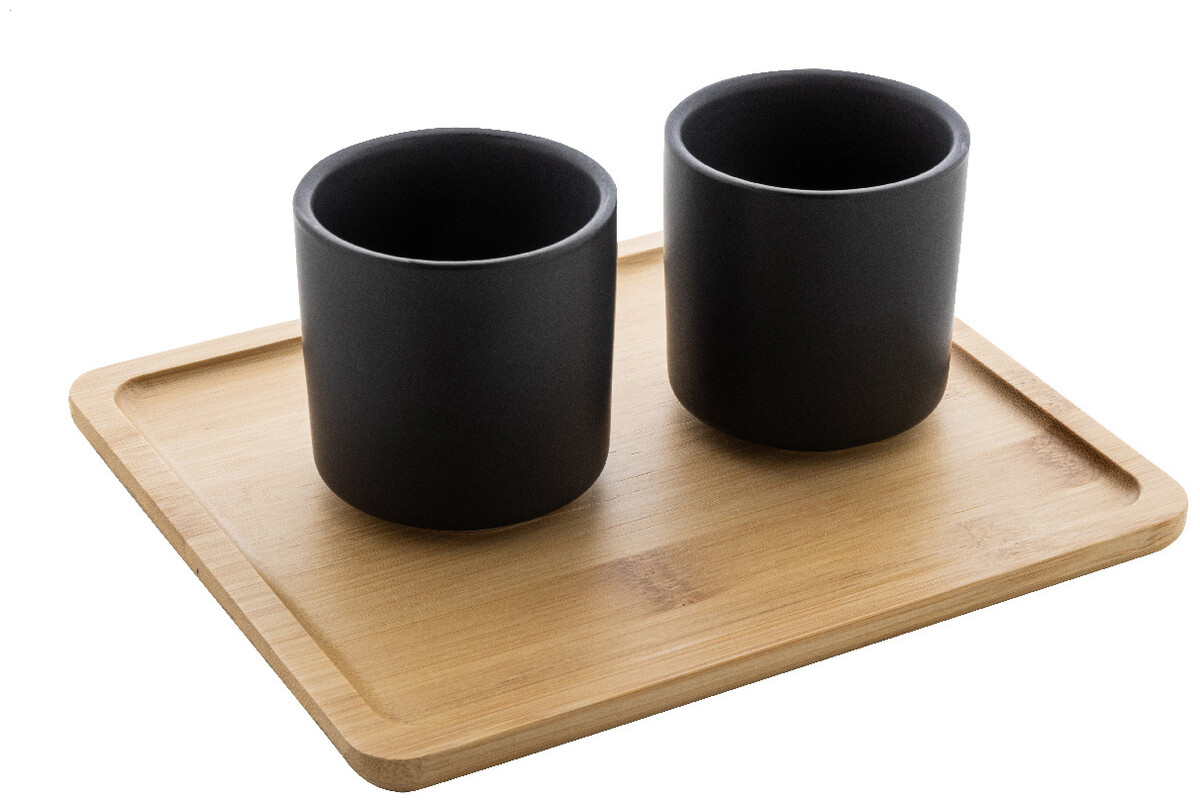 Vysoce kvalitní keramická čajová sada s matným povrchem a bambusovým servírovacím podnosem. Včetně konvice na čaj (500 ml) s víkem z nerezové oceli a sítkem na čaj a dvou šálků (150 ml). V krabičce z kraftového papíru.