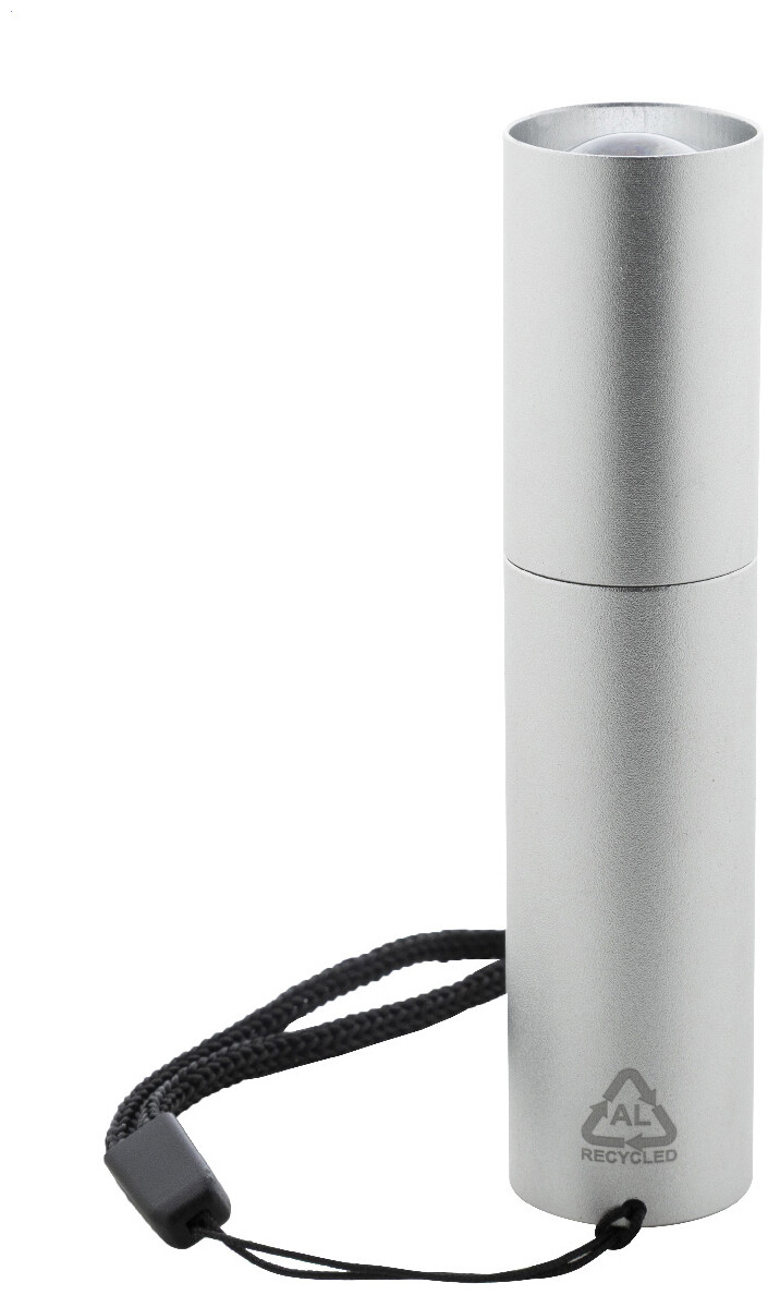 Baterka z recyklovaného hliníku s vestavěnou dobíjecí baterií USB (400 mAh) a popruhem na nošení. S vysoce výkonným COB světlem s možností zoomu a 3 světelnými režimy. Včetně nabíjecího kabelu USB.