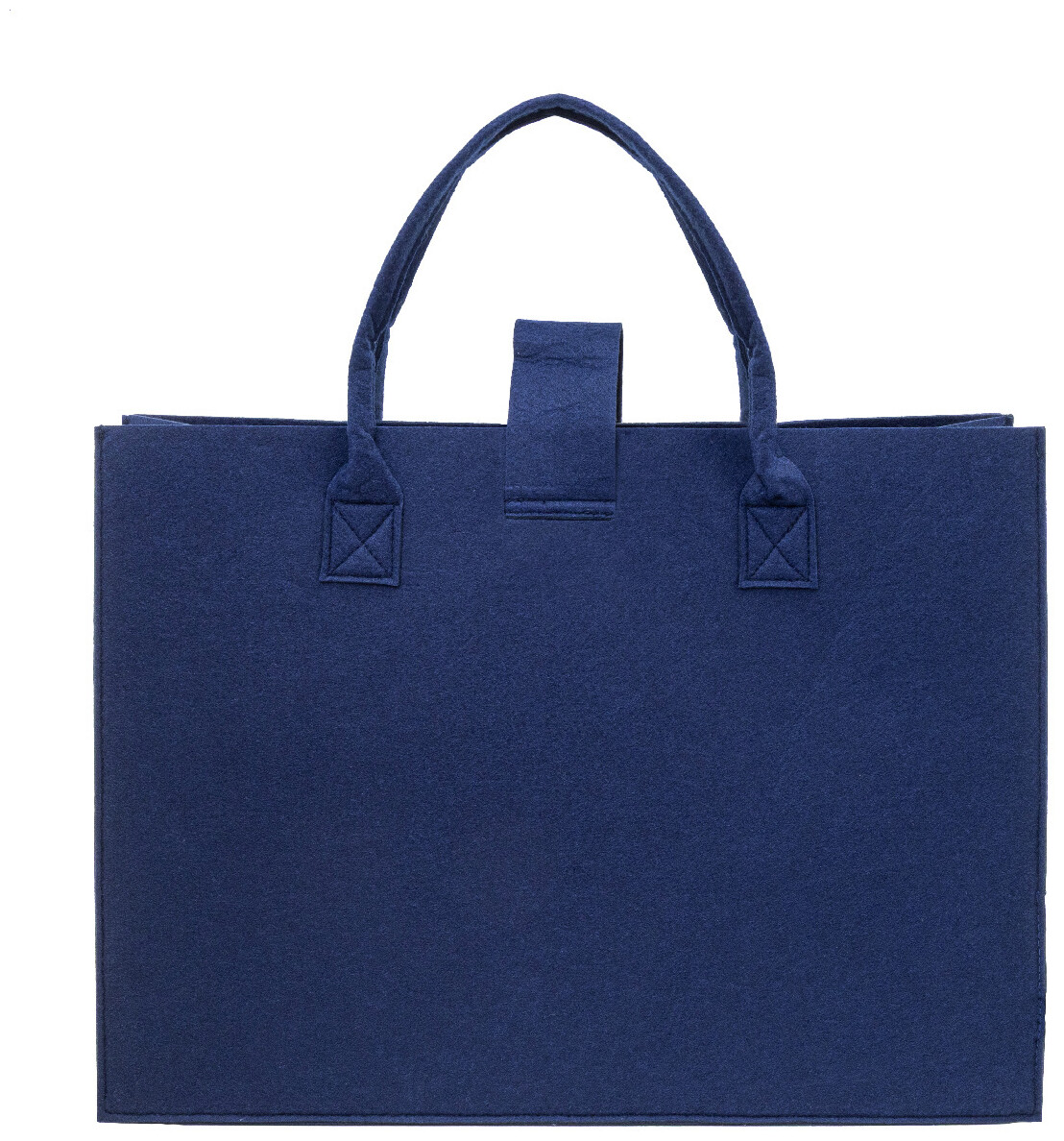 Nákupní taška z RPET plsti s klínkem, zapínáním na knoflíky a krátkými uchy. S výraznou etiketou z RPET.