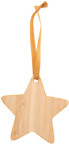 Vánoční ozdoba z bambusové překližky se zlatou stuhou. Dodáváno s oddělenou stuhou.