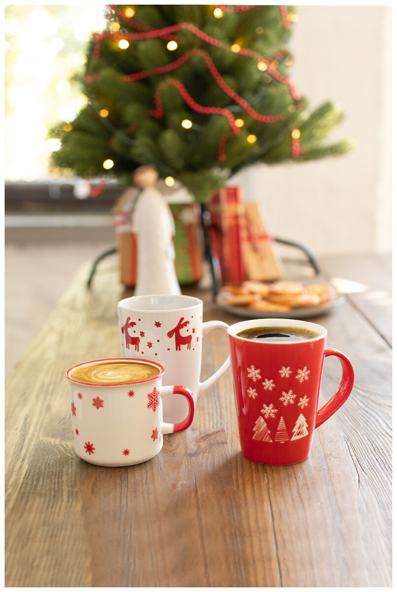 Retro keramický hrnek s vánočním designem, 300 ml. Ve stejně barevné dárkové krabičce.