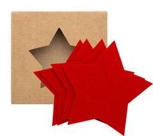 Sada 4 vánočních podtácků z plsti RPET ve tvaru hvězdy. V krabičce z kraftového papíru.