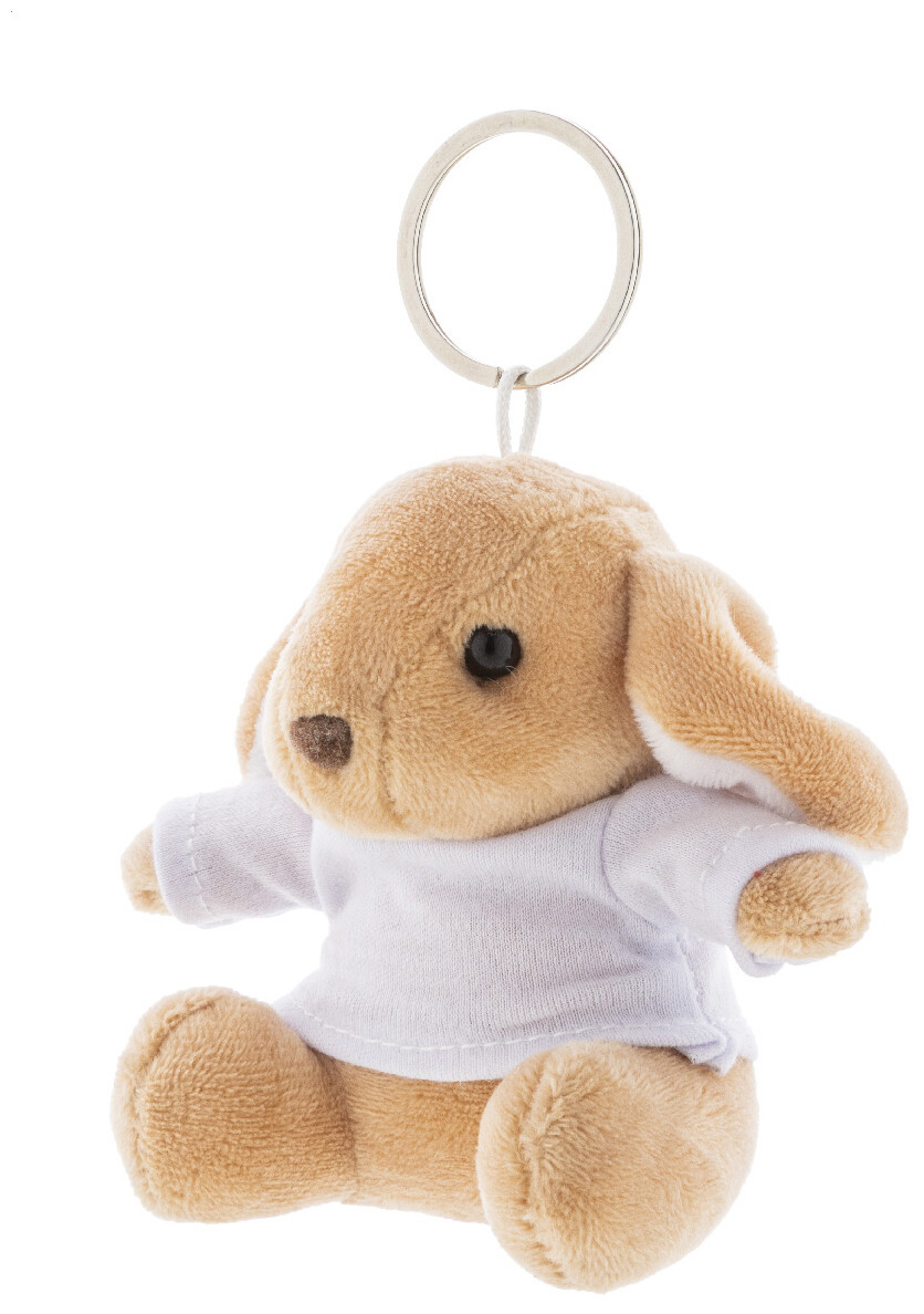 Plyšový přívěsek na klíče se zajícem s tričkem na potisk.