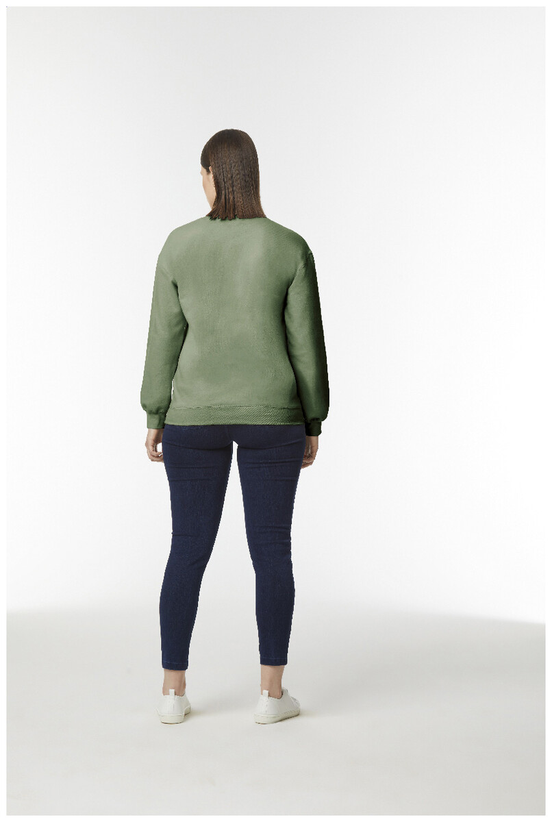 Mikina s kulatým výstřihem, 80% bavlna a 20% polyester. 285 g/m2 (bílá 278 g/m2). Značka Gildan.