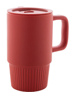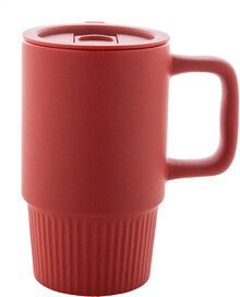 Vysoce kvalitní keramický cestovní hrnek s matným vnějším povrchem a plastovým víčkem z polypropylenu. 420 ml.