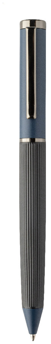 Elegantní sada kovového kuličkového pera a rolleru s pruhovaným tělem, barevnými akcenty a lesklými detaily v barvě antracit. V barevně sladěné dárkové krabičce a s modrou náplní. Produkt značky André Philippe.