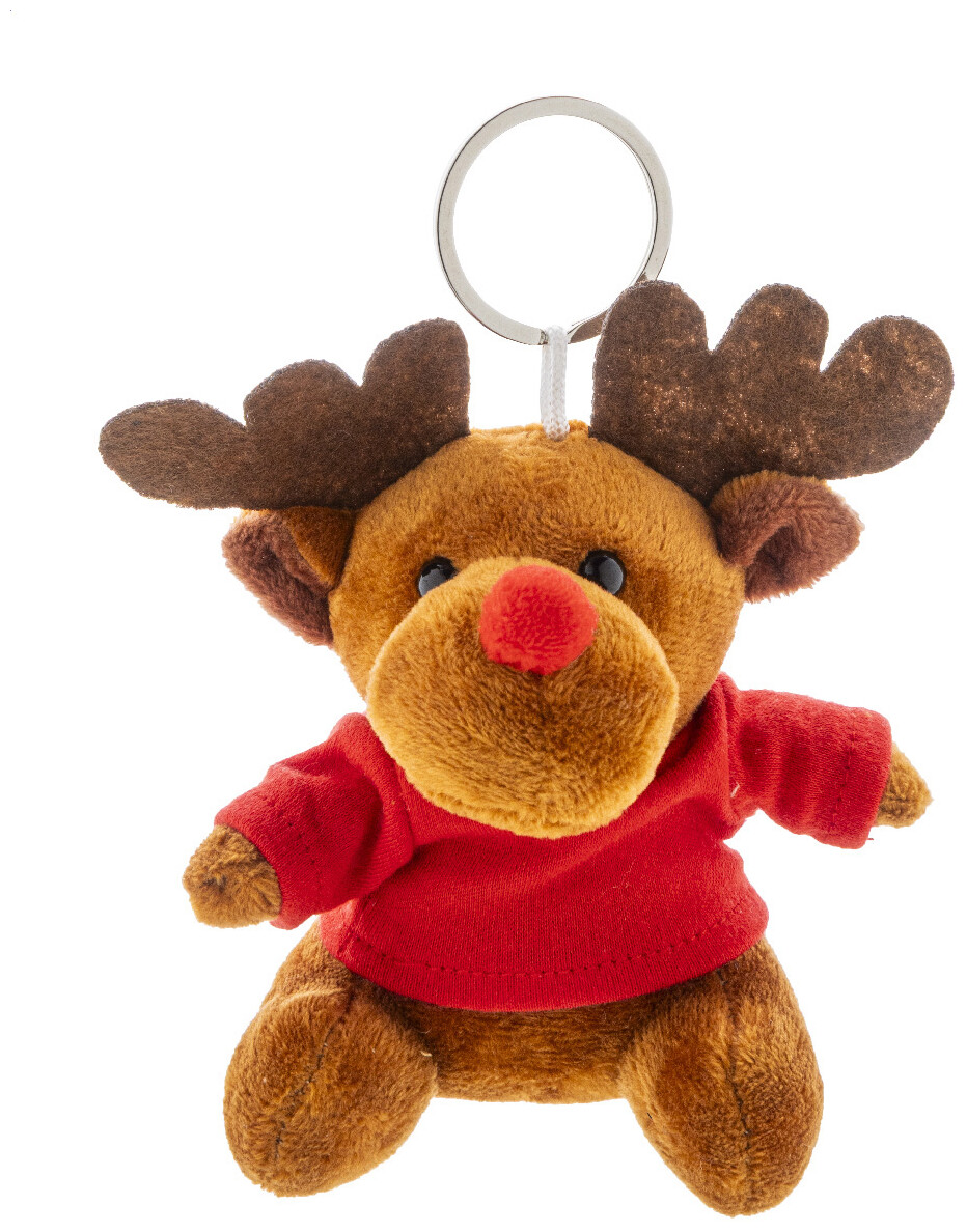 Plyšový vánoční přívěsek na klíče s motivem soba a tričkem na potisk.