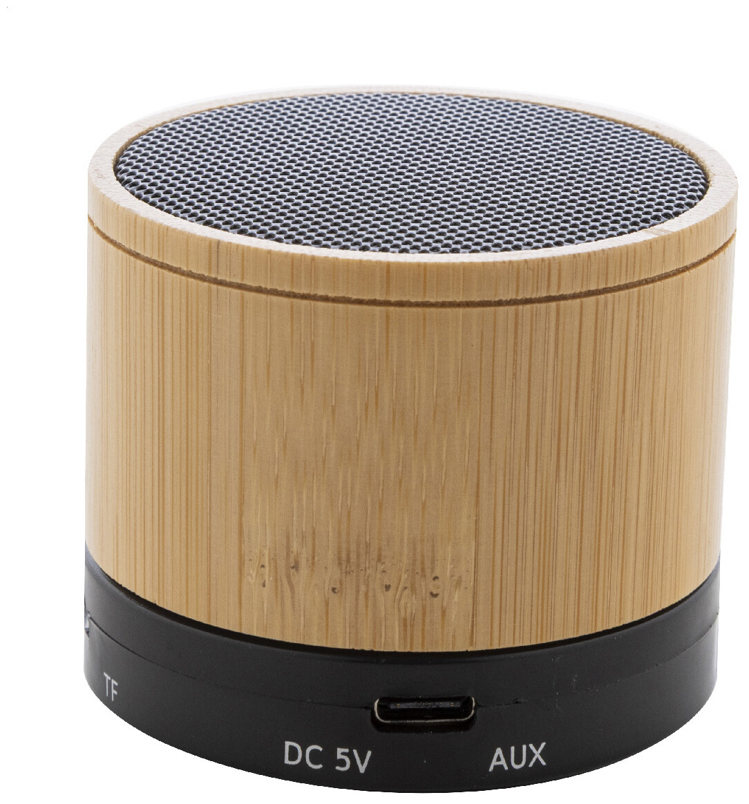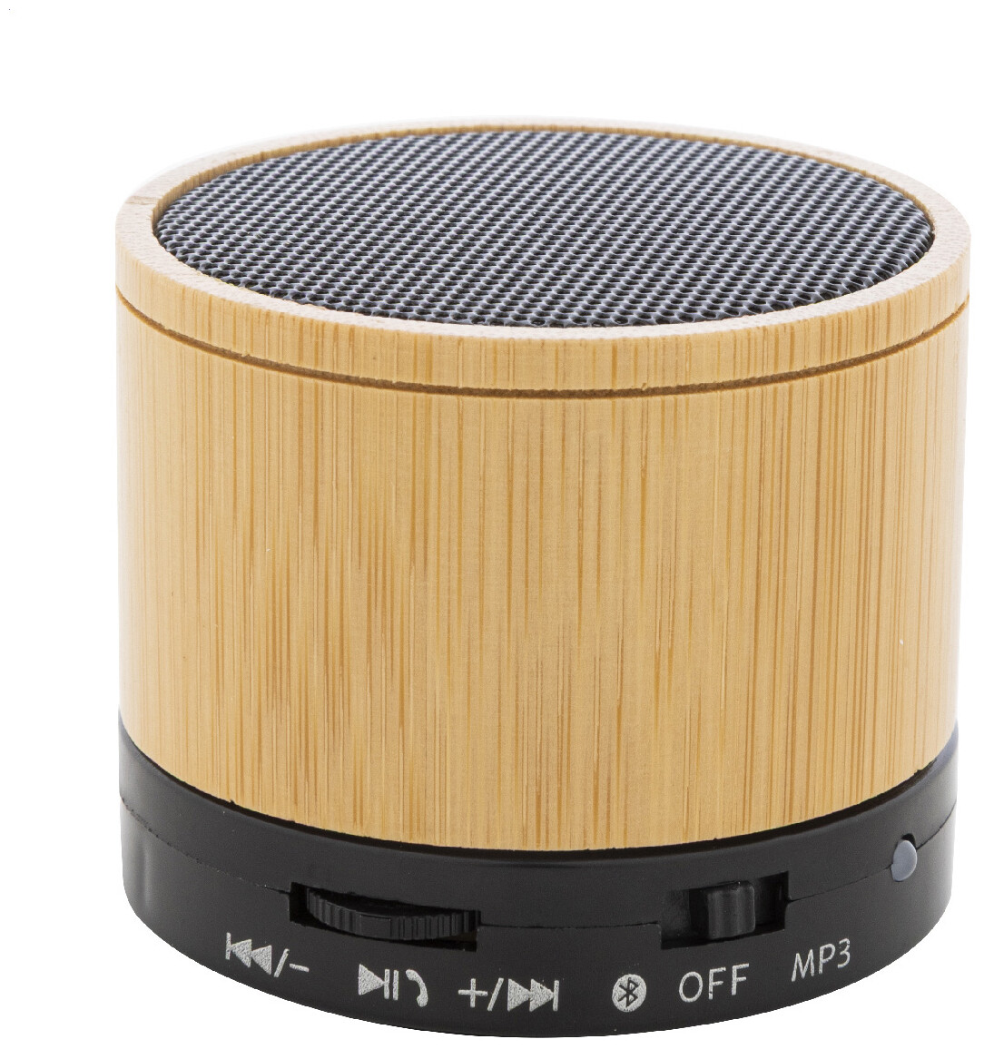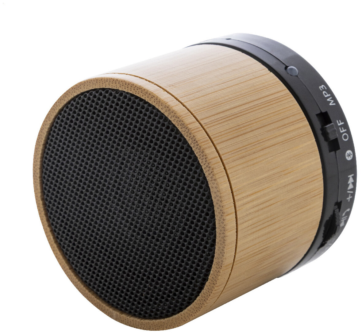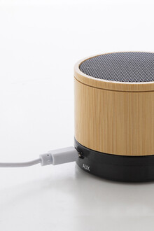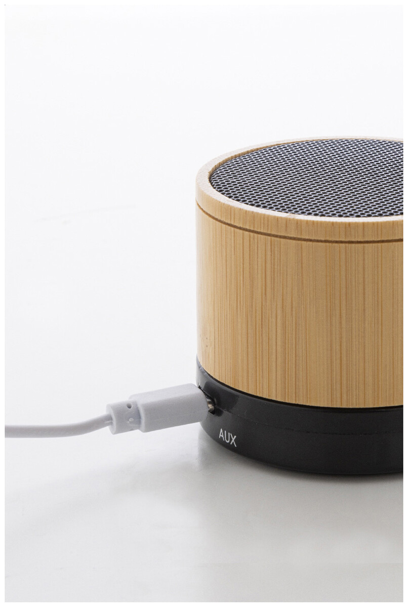Bezdrátový reproduktor v pouzdře z recyklovaného ABS a bambusu s kovovou síťovinou a dobíjecí baterií (300 mAh). S funkcí handsfree hovorů a přehrávání MP3 z micro SD karty. Včetně nabíjecího kabelu USB.