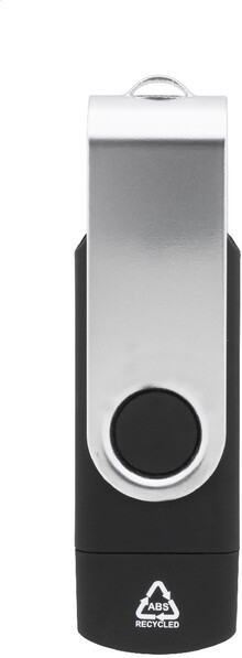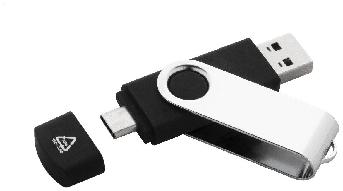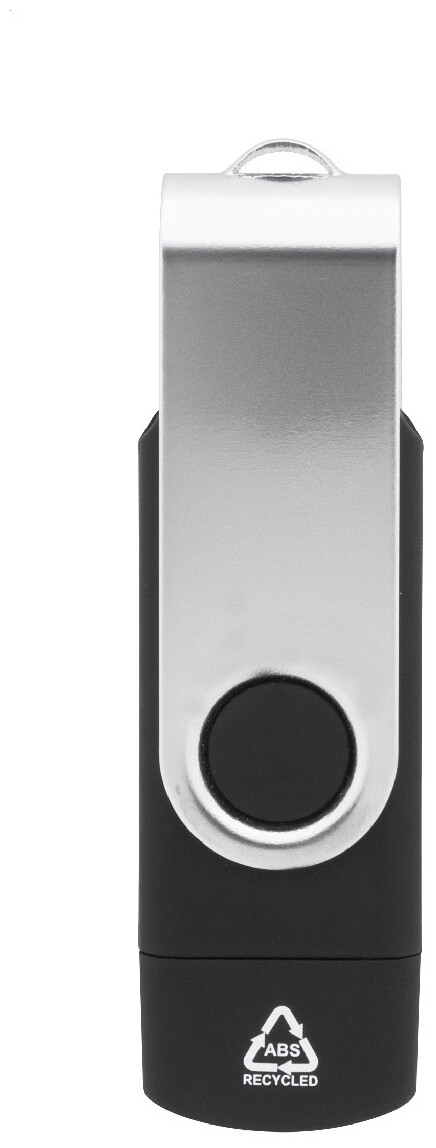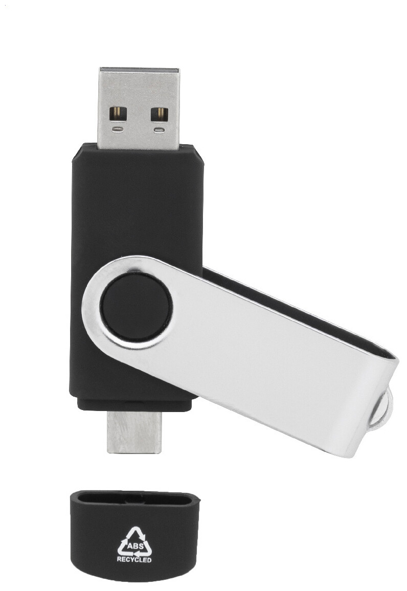 Otočný USB flash disk OTG v pouzdře z recyklovaného ABS a kovu s pamětí 8/16/32 GB. S připojeními USB a USB-C. USB 2.0.