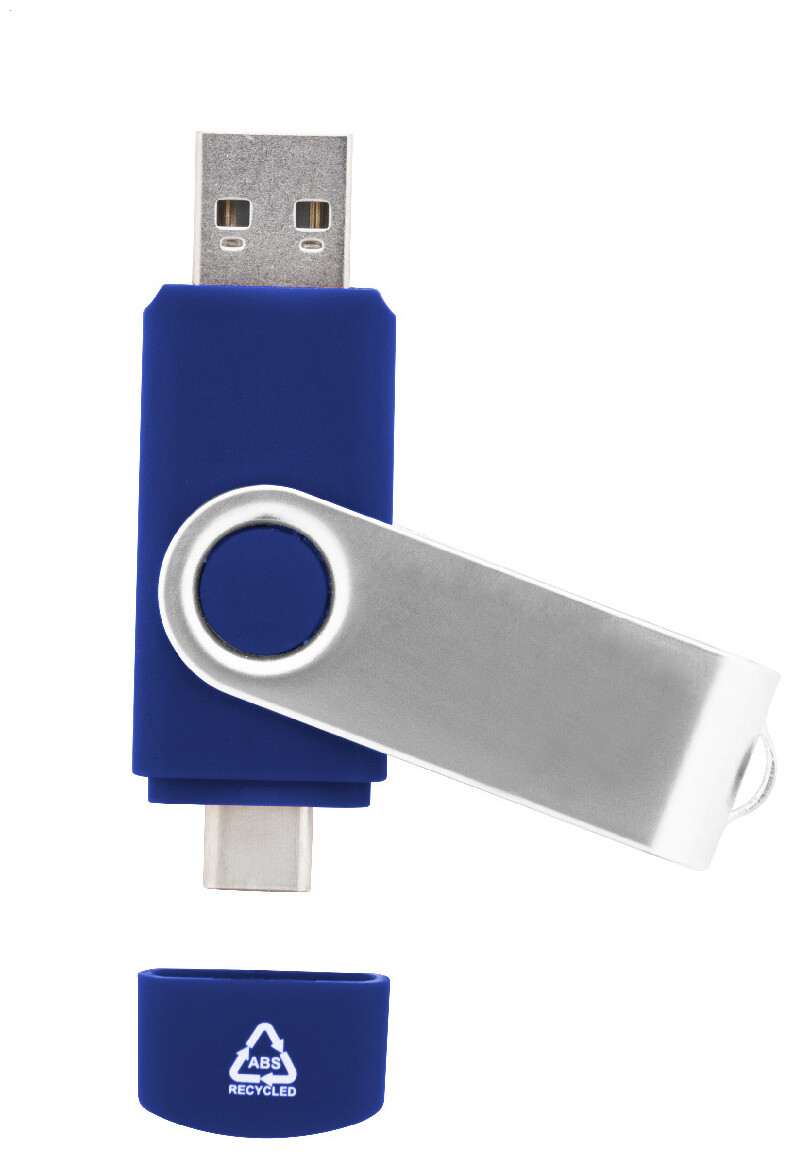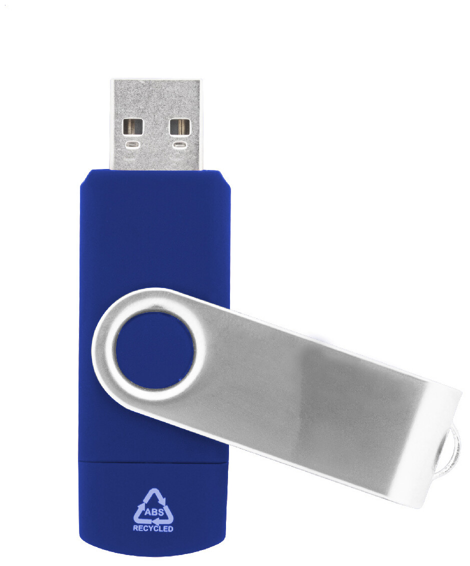 Otočný USB flash disk OTG v pouzdře z recyklovaného ABS a kovu s pamětí 8/16/32 GB. S připojeními USB a USB-C. USB 2.0.