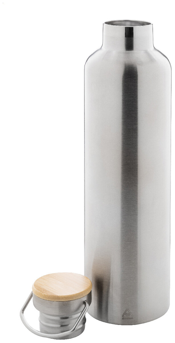 Dvoustěnná vakuově izolovaná láhev z recyklované nerezové oceli s bambusovým víčkem, 1000 ml.