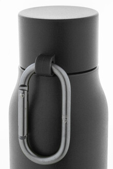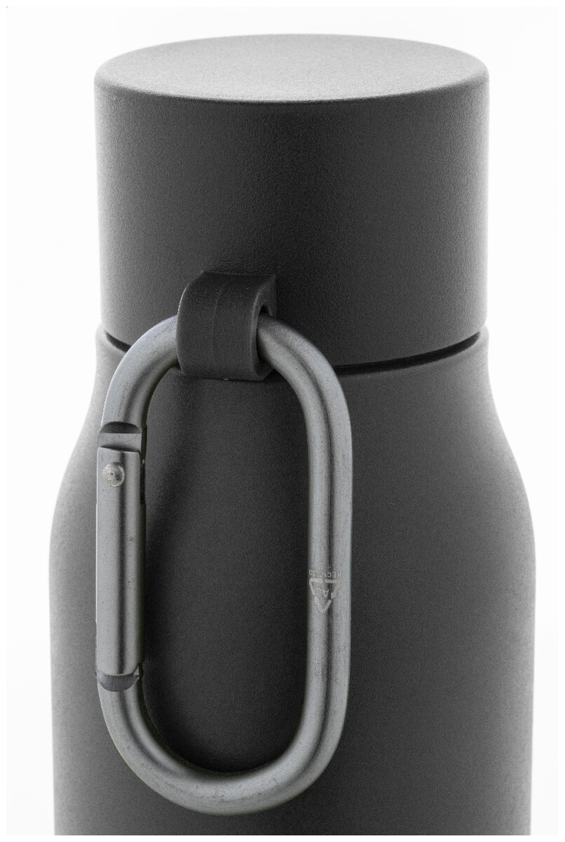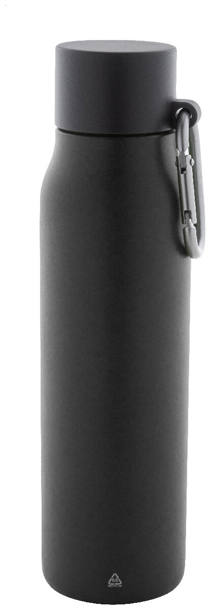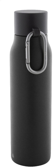 Dvoustěnná vakuová láhev z recyklované nerezové oceli s víčkem z PP a karabinou z recyklovaného hliníku. 500 ml.