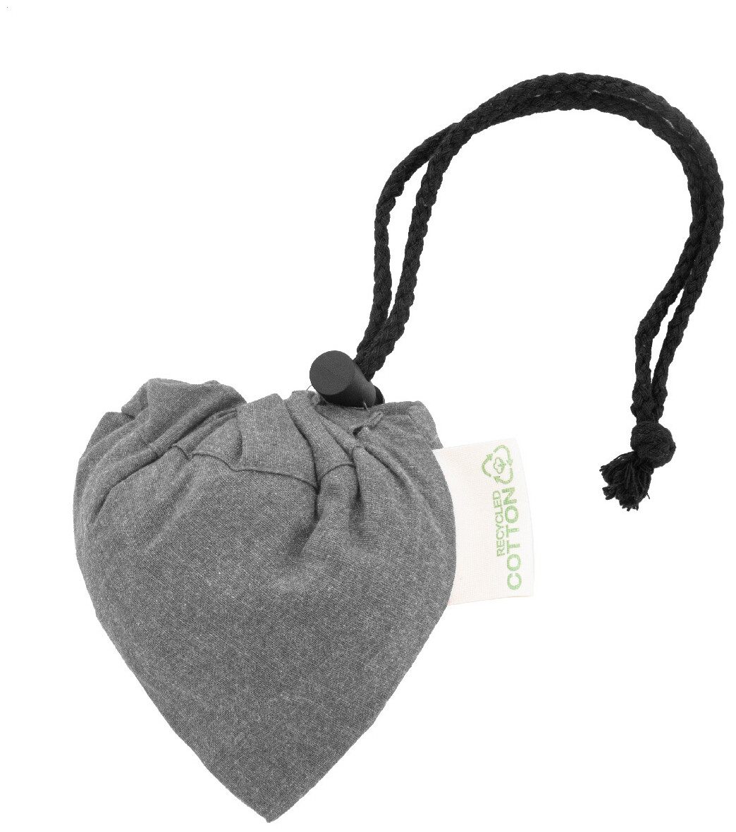 Skládací nákupní taška ze 70 % recyklované bavlny a 30 % polyesteru RPET, 140 g/m2. S výrazným štítkem z recyklované bavlny.