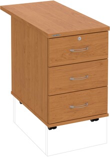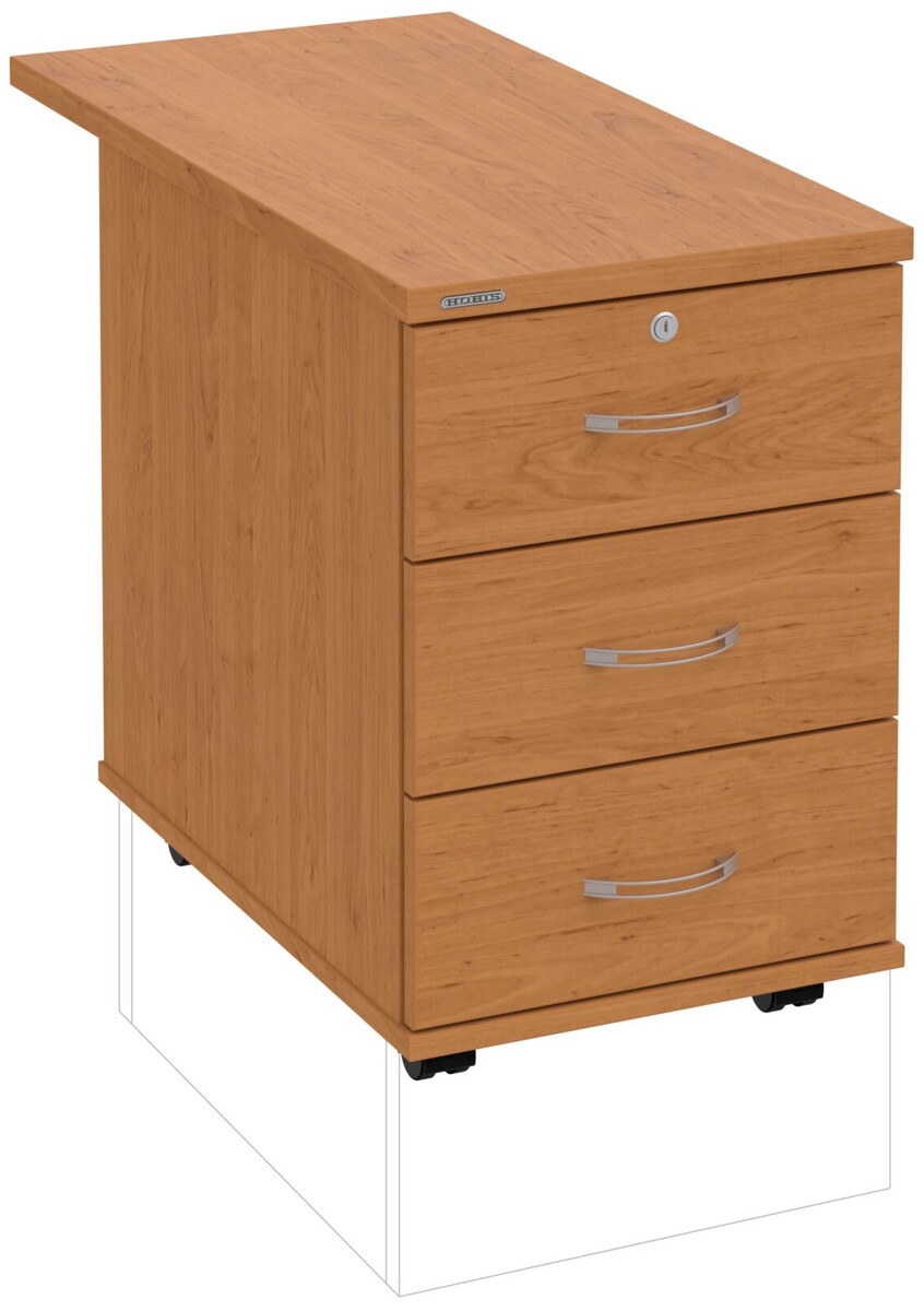 Kancelářské kontejnery nabízíme ve 4 modelech, které se liší uspořádáním zásuvek. Využití naleznou,spolu s ostatními řadami kancelářského nábytku HOBIS, ve všech kancelářských prostorech. Rozměry jsou 40 cm šířka, 60 cm hloubka a 60 cm výška. Protože jsme si vědomi nároků na zajištění bezpečnosti obsahu kontejnerů, osadili jsme většinu z nich zámky s centrálním zamykáním. Stačí zamknout jednu zásuvku a současně tak uzamknete i všechny ostatní. Díky integrovanému systému STOPCONTROL v uzamykacím mechanismu se nemusíte bát převrhnutí kontejneru nebo případného skřípnutí rukou. Systém zaručí, že při otevření jedné zásuvky se ostatní zásuvky automaticky zablokují. Stoly můžete vybírat z nabídky kancelářského nábytku HOBIS.