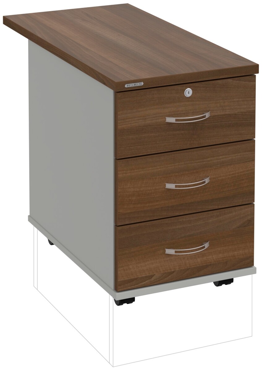 Kancelářské kontejnery nabízíme ve 4 modelech, které se liší uspořádáním zásuvek. Využití naleznou,spolu s ostatními řadami kancelářského nábytku HOBIS, ve všech kancelářských prostorech. Rozměry jsou 40 cm šířka, 60 cm hloubka a 60 cm výška. Protože jsme si vědomi nároků na zajištění bezpečnosti obsahu kontejnerů, osadili jsme většinu z nich zámky s centrálním zamykáním. Stačí zamknout jednu zásuvku a současně tak uzamknete i všechny ostatní. Díky integrovanému systému STOPCONTROL v uzamykacím mechanismu se nemusíte bát převrhnutí kontejneru nebo případného skřípnutí rukou. Systém zaručí, že při otevření jedné zásuvky se ostatní zásuvky automaticky zablokují. Stoly můžete vybírat z nabídky kancelářského nábytku HOBIS.