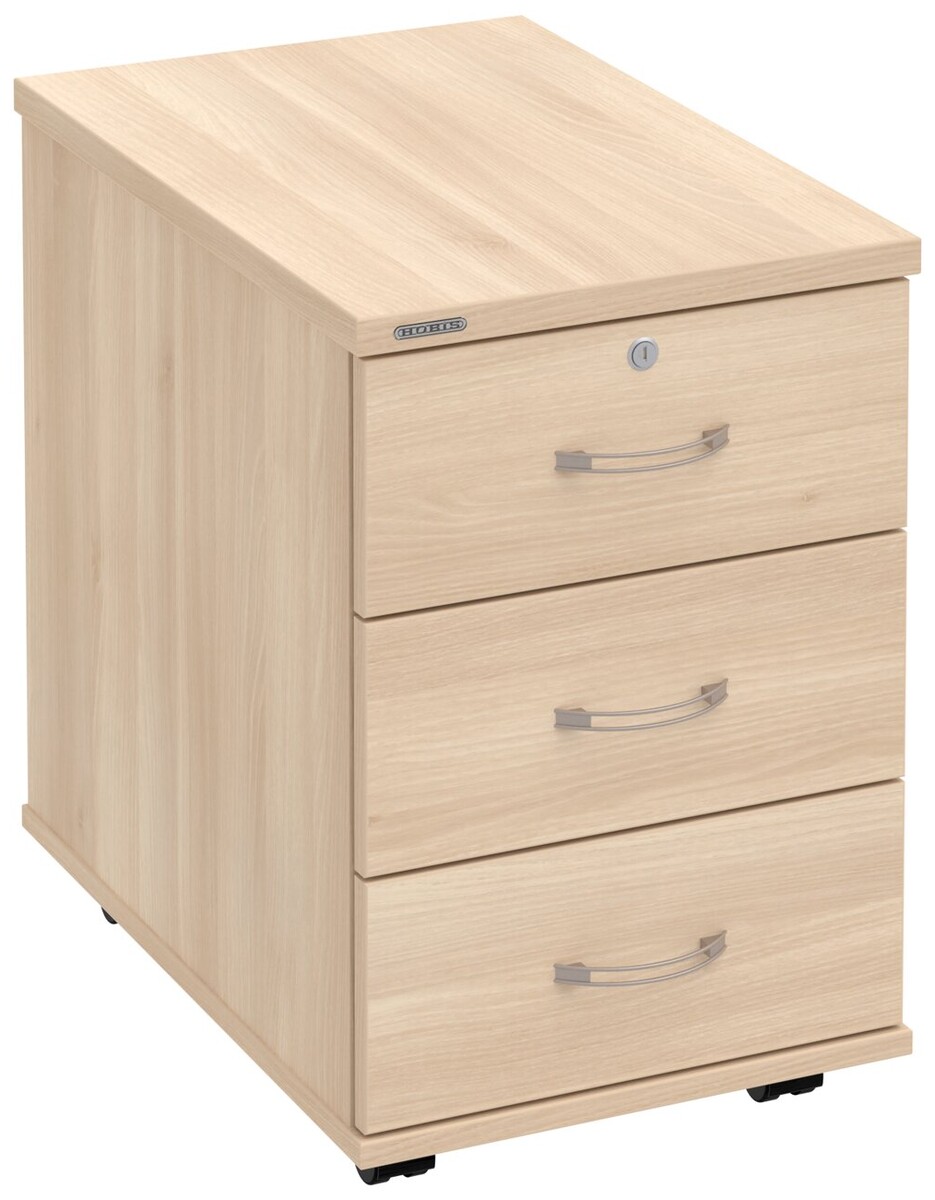 Kancelářské kontejnery nabízíme ve 4 modelech, které se liší uspořádáním zásuvek. Využití naleznou,spolu s ostatními řadami kancelářského nábytku HOBIS, ve všech kancelářských prostorech. Rozměry jsou 40 cm šířka, 60 cm hloubka a 60 cm výška. Protože jsme si vědomi nároků na zajištění bezpečnosti obsahu kontejnerů, osadili jsme většinu z nich zámky s centrálním zamykáním. Stačí zamknout jednu zásuvku a současně tak uzamknete i všechny ostatní. Díky integrovanému systému STOPCONTROL v uzamykacím mechanismu se nemusíte bát převrhnutí kontejneru nebo případného skřípnutí rukou. Systém zaručí, že při otevření jedné zásuvky se ostatní zásuvky automaticky zablokují. Stoly můžete vybírat z nabídky kancelářského nábytku HOBIS.