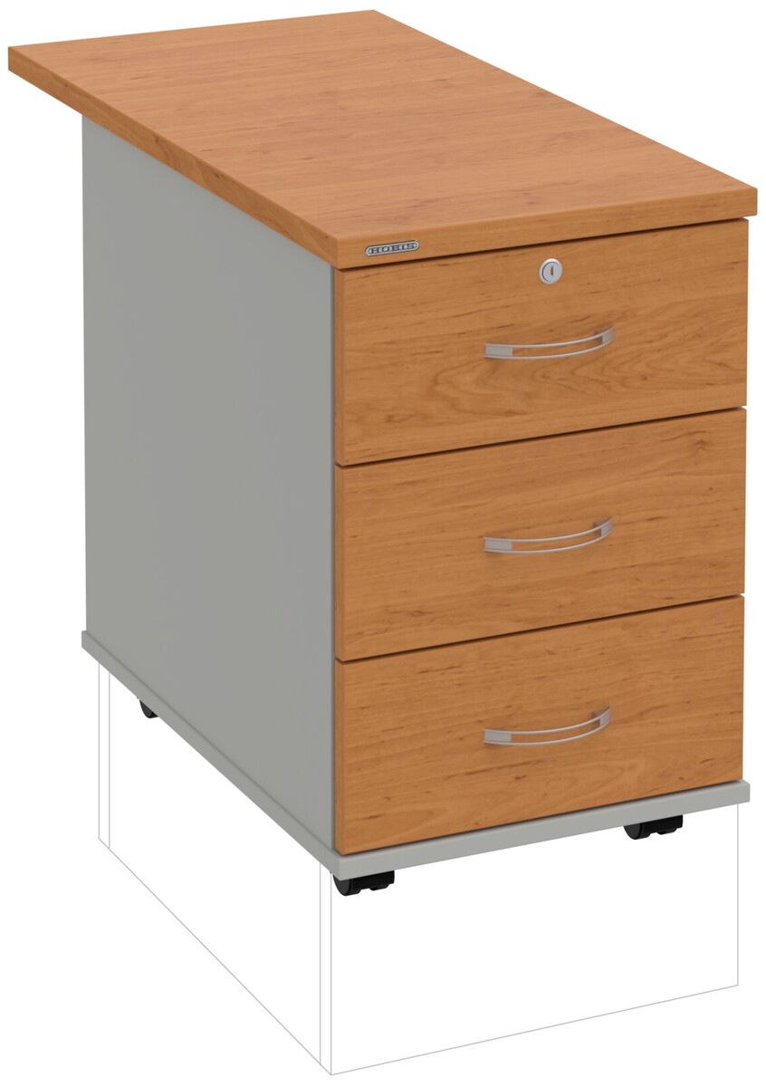 Kancelářské kontejnery nabízíme ve 4 modelech, které se liší uspořádáním zásuvek. Využití naleznou,spolu s ostatními řadami kancelářského nábytku HOBIS, ve všech kancelářských prostorech. Rozměry jsou 40 cm šířka, 60 cm hloubka a 60 cm výška. Protože jsme si vědomi nároků na zajištění bezpečnosti obsahu kontejnerů, osadili jsme většinu z nich zámky s centrálním zamykáním. Stačí zamknout jednu zásuvku a současně tak uzamknete i všechny ostatní. Díky integrovanému systému STOPCONTROL v uzamykacím mechanismu se nemusíte bát převrhnutí kontejneru nebo případného skřípnutí rukou. Systém zaručí, že při otevření jedné zásuvky se ostatní zásuvky automaticky zablokují. Stoly můžete vybírat z nabídky kancelářského nábytku HOBIS.