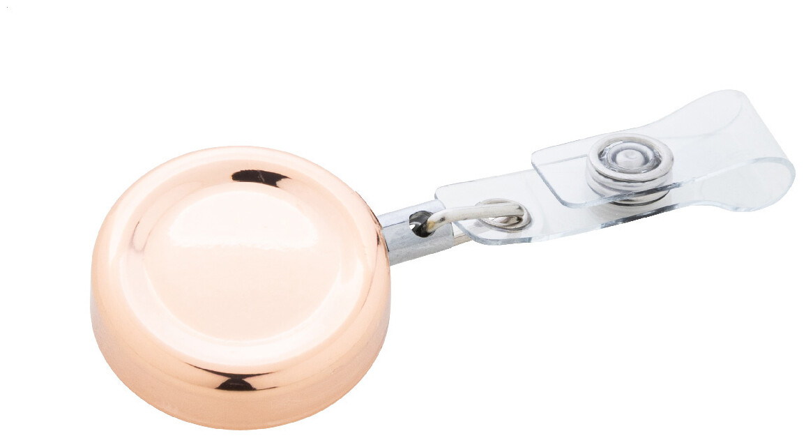 Exkluzivní kovový držák na ski pass s vysoce lesklou metalickou povrchovou úpravou. Zapínání na druk, teleskopická šňůra a kovová spona.