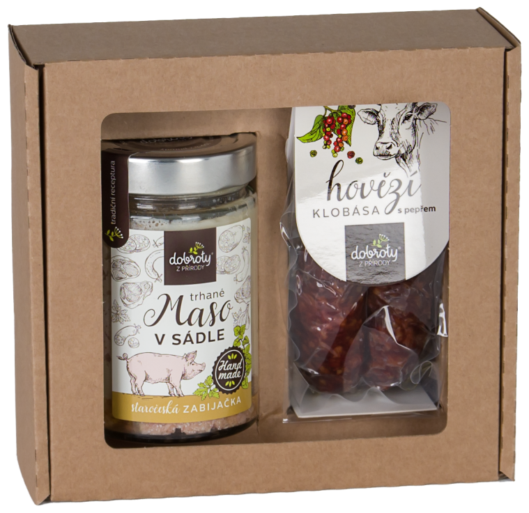 Trhané maso v sádle 250 g, Hovězí klobása s pepřem 2 ks/ cca 90g