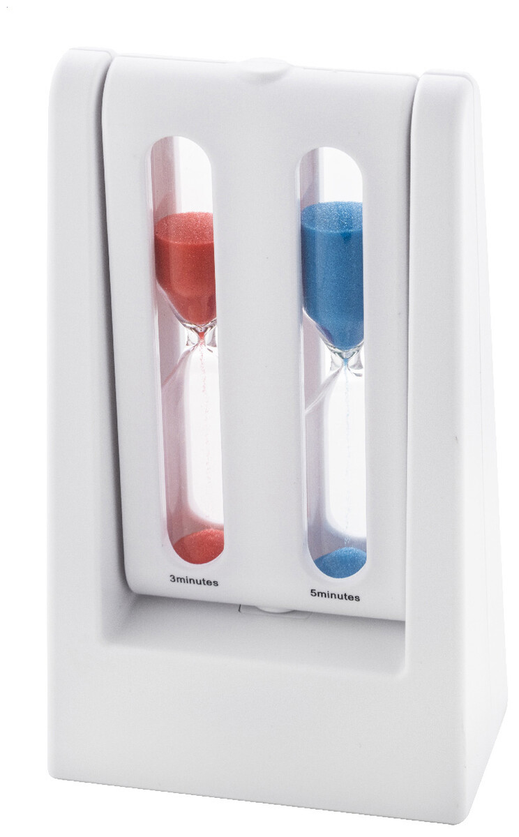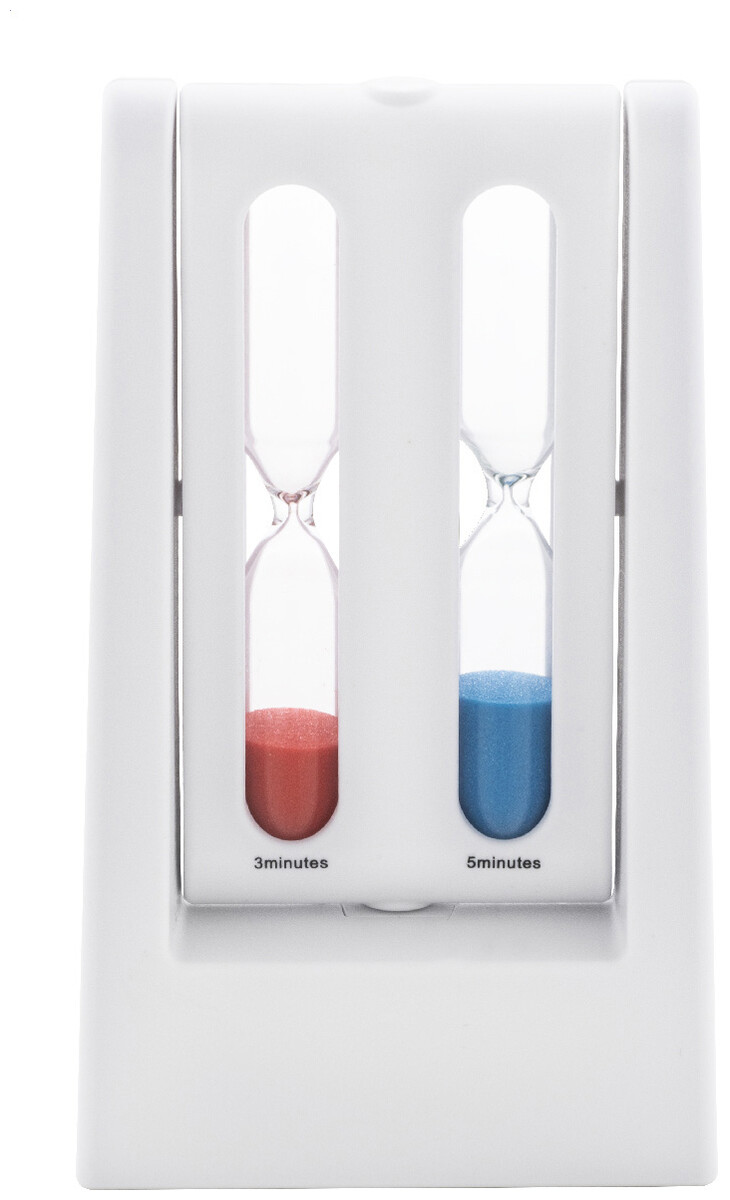 Přesýpací hodiny z recyklovaného ABS materiálu s otočnými přesýpacími hodinami s 3 a 5 minutami.