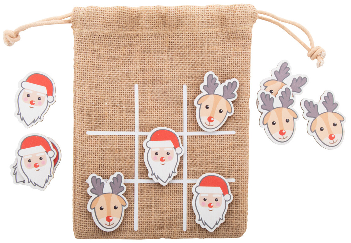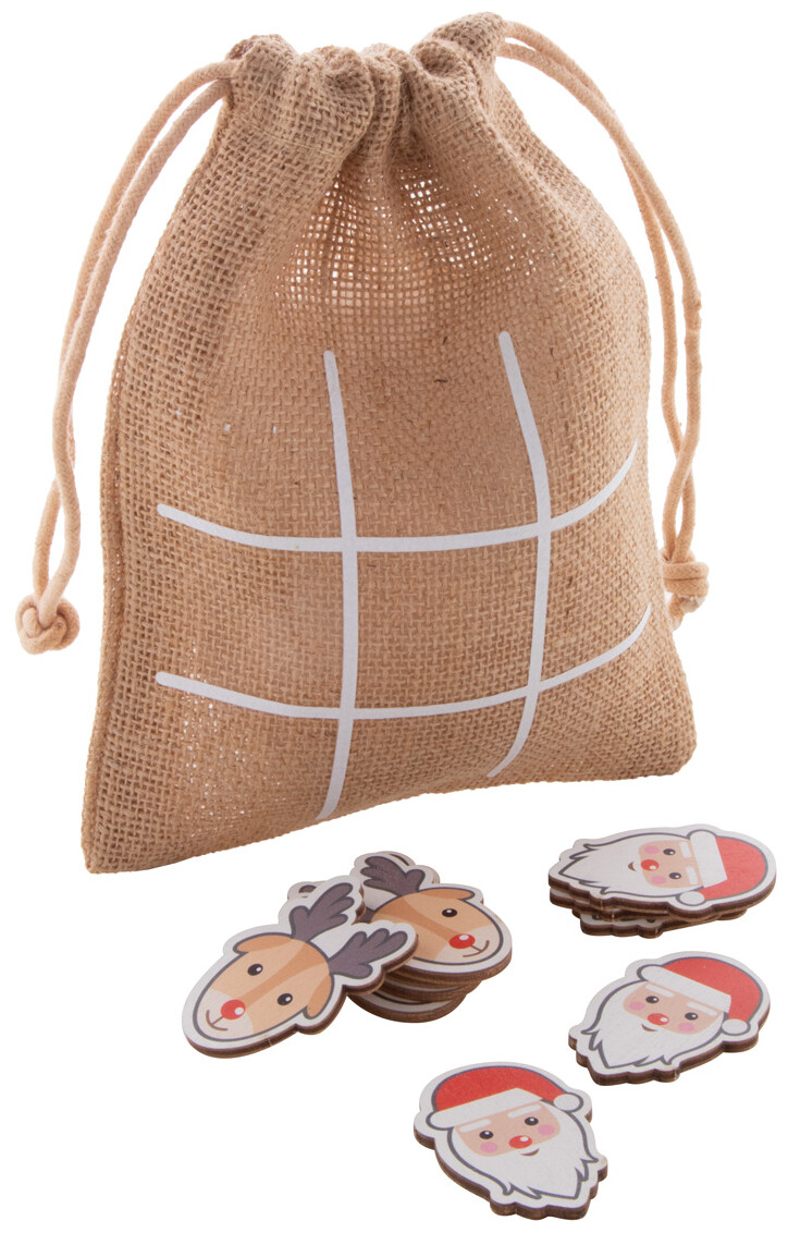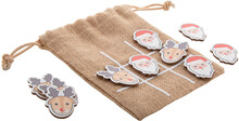 Piškvorky s vánočním designem z březové překližky s 10 žetony a jutovým pytlíkem.