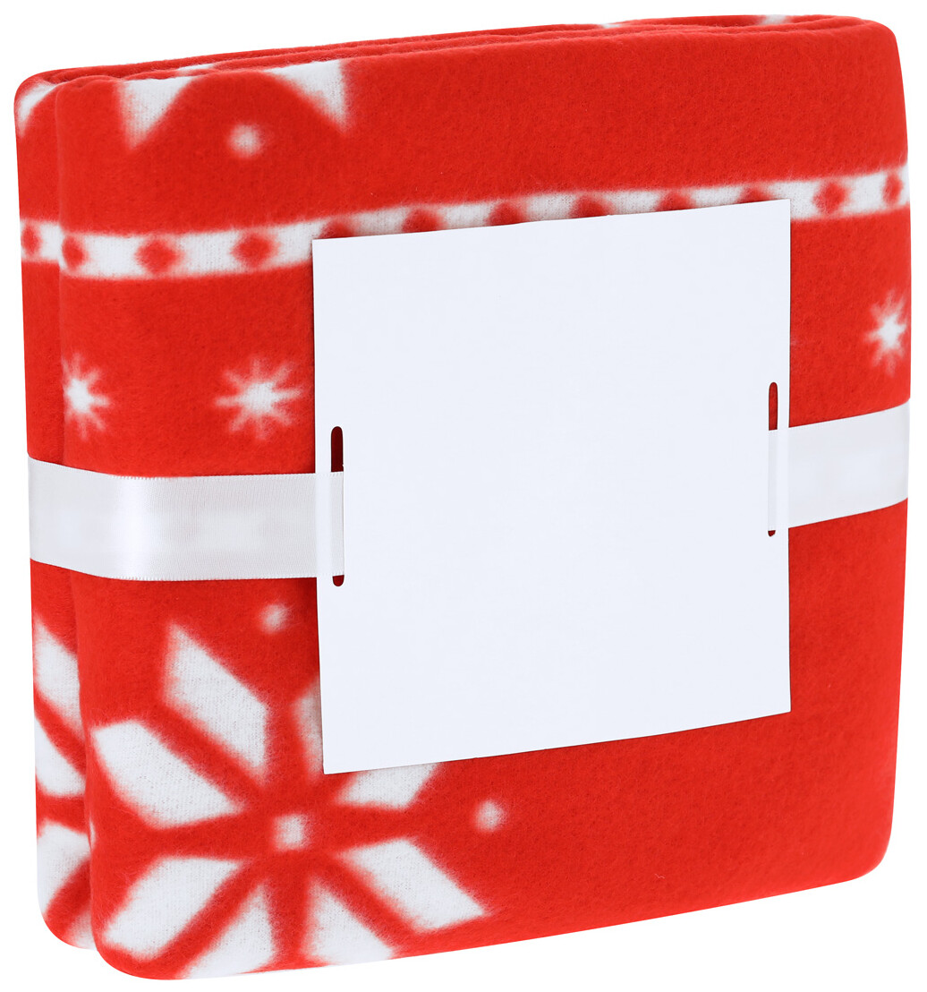 Vánoční deka RPET polar fleece s úpravou proti žmolkování, polyester RPET 200 g/m2. Zabalené do stuhy a potisknutelné papírové karty.