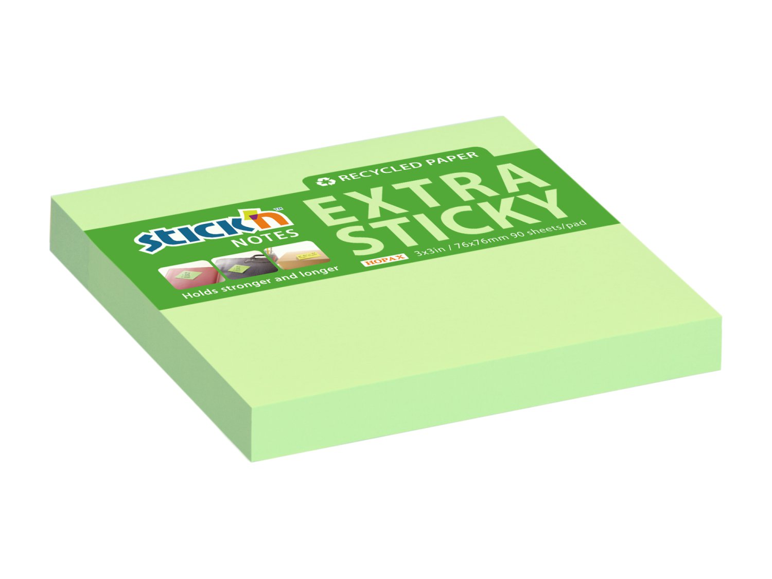 Samolepicí bloček Stick'n by Hopax EXTRA STICKY, 76 x 76 mm, recykl. zelený, 90 lístků