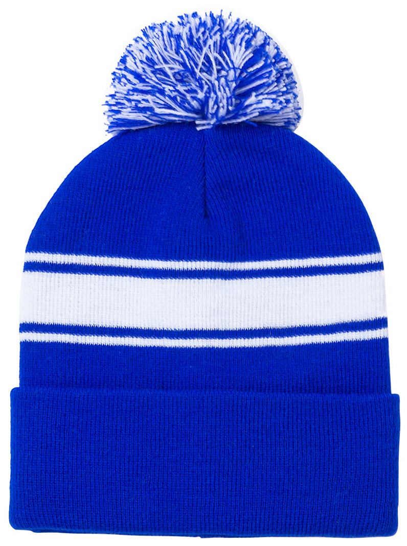 Akrylová zimní čepice s bílými pruhy a bambulí do barvy.