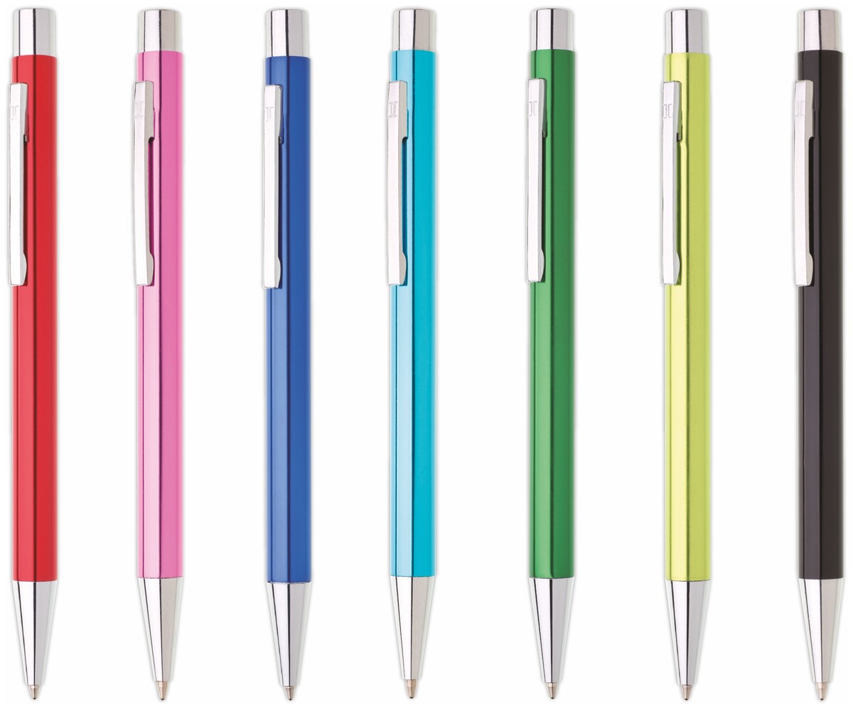 SFERA, elegantní modrá hliníková propiska z kolekce GABRIELIS, klip se značkou ][.