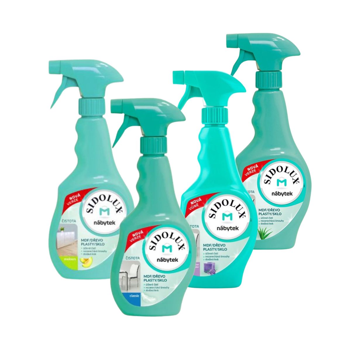 Čistící sprej na nábytek Sidolux M proti prachu je multifunkční rozprašovač vhodný na čištění hladkých povrchů v domácnostech. Prostředek je možné použít na dřevěné povrchy, plast, lakované povrchy, nerez a sklo. Dále je vhodný na čištění tvrdých ploch v interiérech automobilů – výplní dveří, palubních desek, apod. Obsažená vonná kompozice příjemně provoní čištěný prostor.