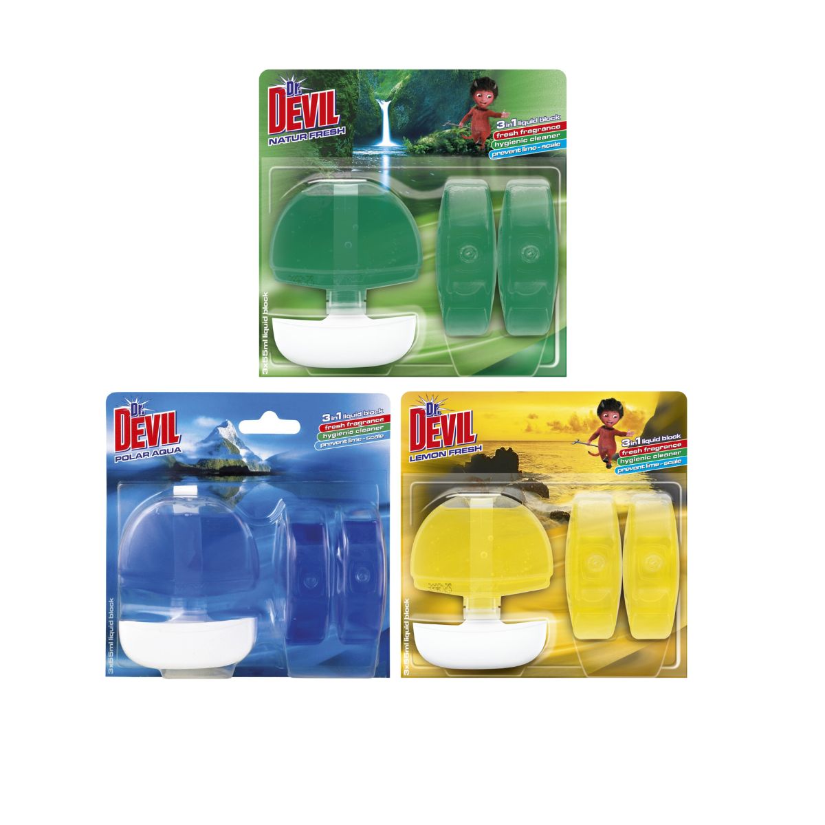 | 1743103 | WC blok Dr. Devil 3 in 1, Lemon Fresh, žlutý, 3 x 55 ml | 68,66 Kč | 83,08 Kč | 1 ks | |||