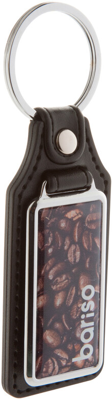 Obdélníkový přívěšek na klíče z PU kůže s kovovou plochou pro epoxy potisk. Cena zahrnuje epoxy potisk, nezahrnuje tiskovou přípravu.