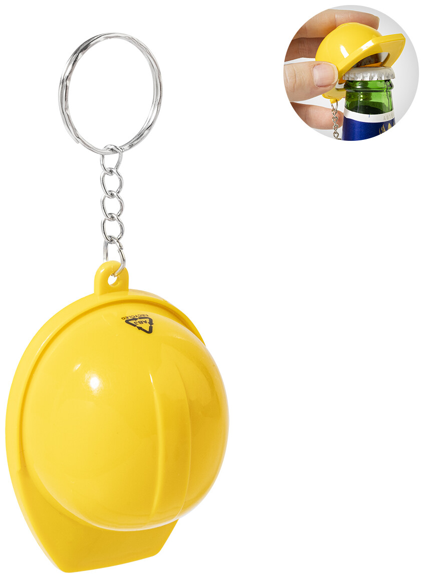 Přívěsek na klíče ve tvaru bezpečnostní přilby z recyklovaného ABS materiálu s otvírákem na lahve.