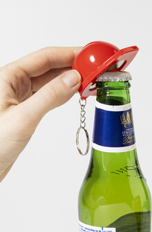 Přívěsek na klíče ve tvaru bezpečnostní přilby z recyklovaného ABS materiálu s otvírákem na lahve.