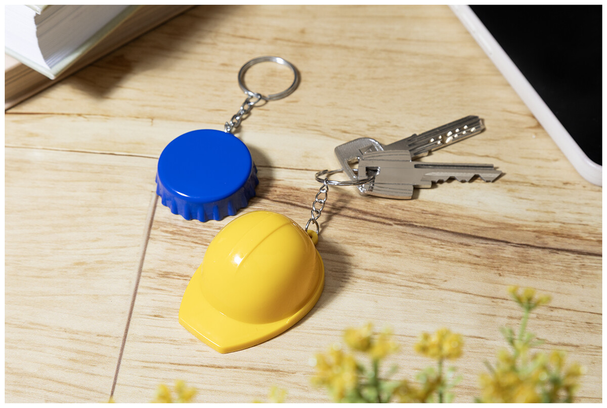 Přívěsek na klíče ve tvaru víčka z recyklovaného ABS plastu s otvírákem.