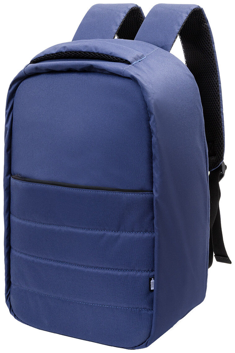 Batoh z RPET s ochranou proti krádeži s přihrádkou na zip, polstrovanou přihrádkou na notebook (15") a tablet (12"), popruhem na kufr, polstrovanými zády a ramenními popruhy. Se skrytou kapsou proti krádeži. Polyester 300D RPET. S výrazným štítkem RPET.