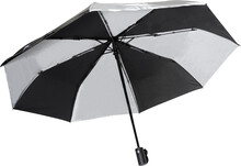Velký, plně automatický (otevřít/zavřít) větruodolný skládací deštník se 4 panely z 190T RPET pongee a 4 panely z reflexní tkaniny. S kovovým rámem, žebry ze skelných vláken a pogumovanou rukojetí s poutkem na ruku. 190T RPET pongee. S charakteristickým štítkem RPET.