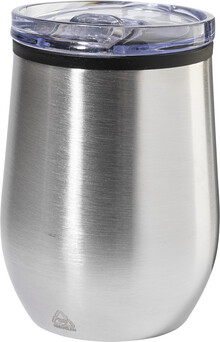 Dvoustěnný termo hrnek z recyklované nerezové oceli s vnitřní stranou z PP a víčkem z PS. 350 ml.