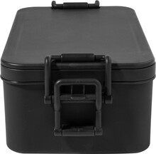 Box na jídlo z PP plastu se sadou příborů (vidlička, lžíce a nůž), zapínáním na přezku a 2 přihrádkami (1000 ml a 800 ml). Stohovatelný design pro kompaktní skladování.