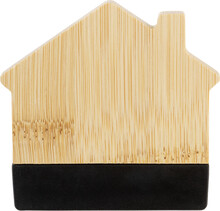 Bambusový magnet na ledničku ve tvaru domečku s klipem na poznámky. Slouží také jako klip na uzavírání sáčků.