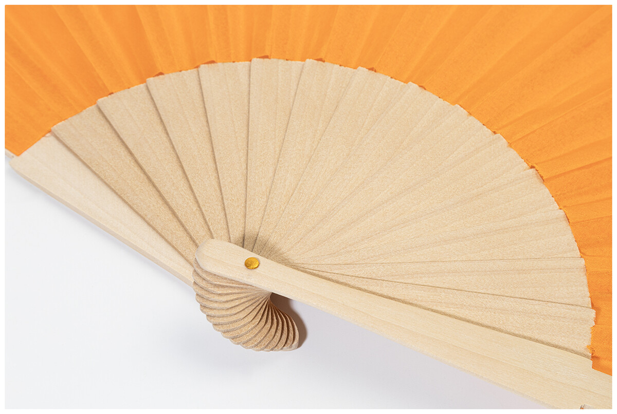 Vějíř z RPET polyesteru s dřevěnými žebry.