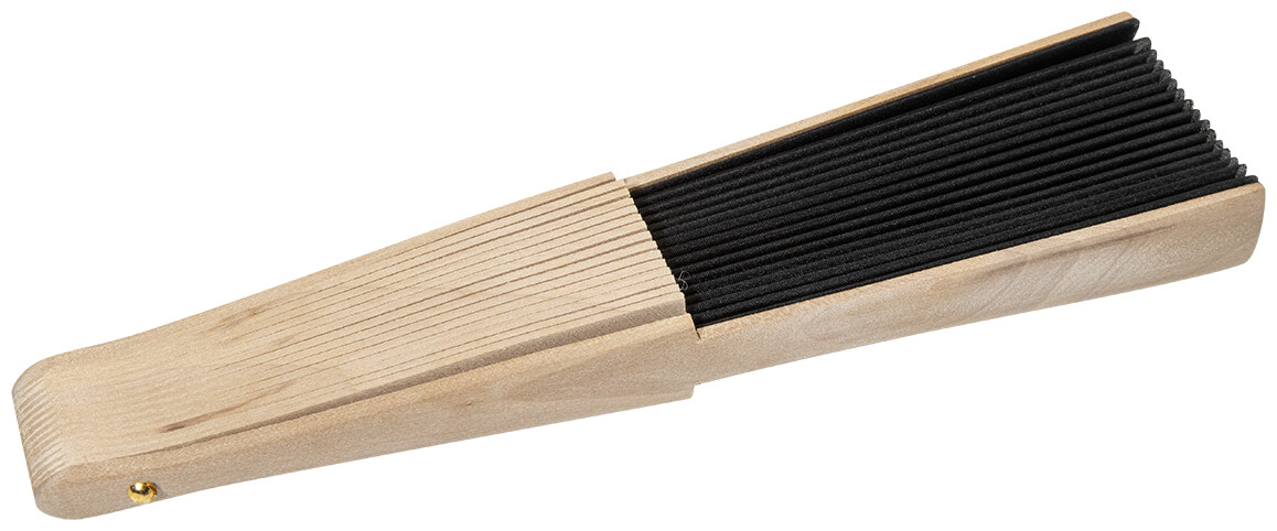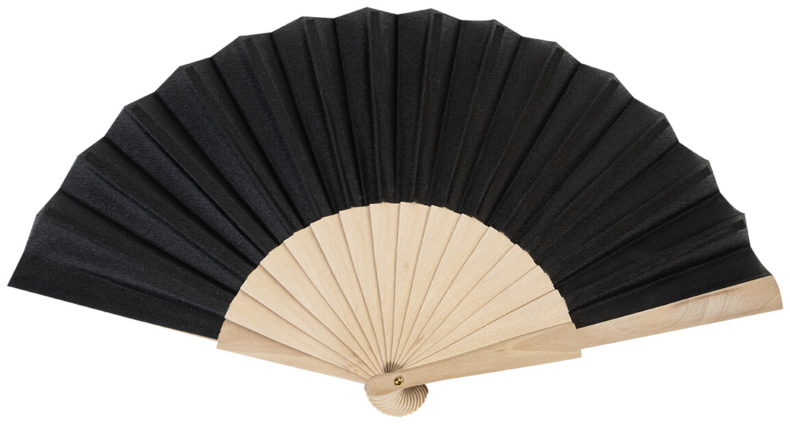 Vějíř z RPET polyesteru s dřevěnými žebry.