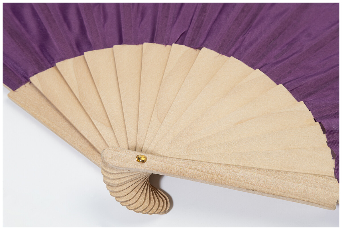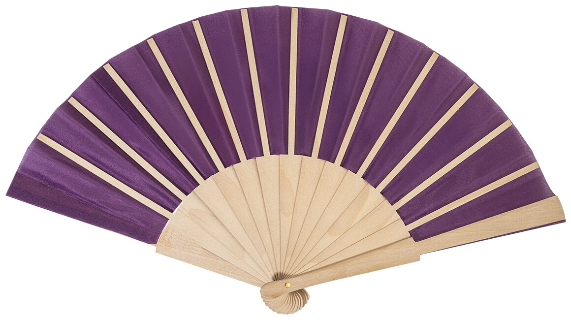 Vějíř z RPET polyesteru s dřevěnými žebry.