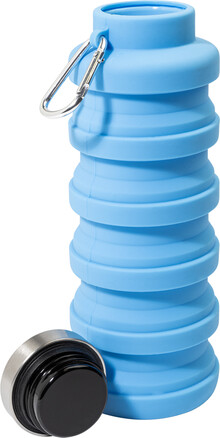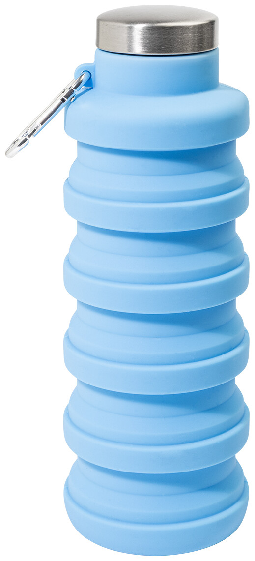 Skládací silikonová láhev s víčkem z nerezové oceli a hliníkovou karabinou. 500 ml
