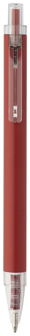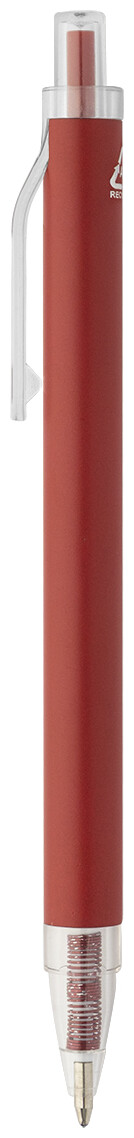 Kuličkové pero z recyklovaného hliníku s matným tělem a průhlednými RPET částmi. S modrou náplní.