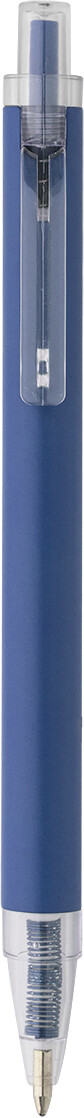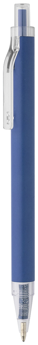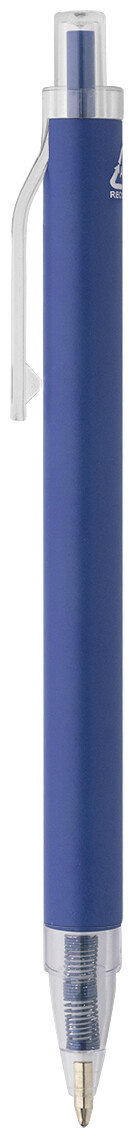 Kuličkové pero z recyklovaného hliníku s matným tělem a průhlednými RPET částmi. S modrou náplní.